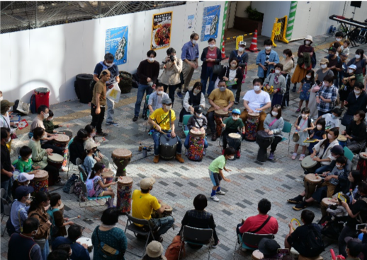 みんなで輪になって太鼓を叩くドラムサークル。自由に叩く太鼓の音が次第に音楽になる様をお楽しみください。